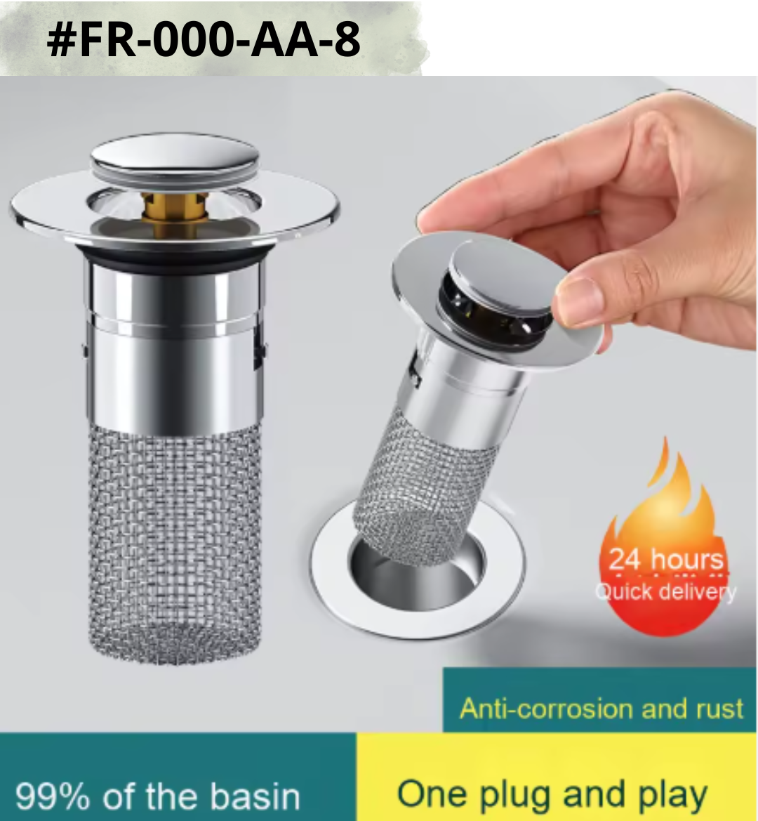 Filtre d’égout pour drain de sol Filtre de lavabo en laiton poli en cuivre pour évier de salle de bain Passoire en acier inoxydable Corbeille à déchets en plastique