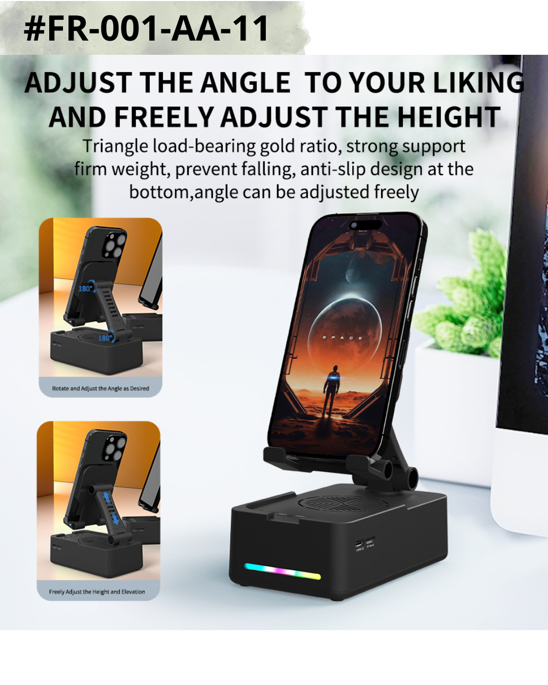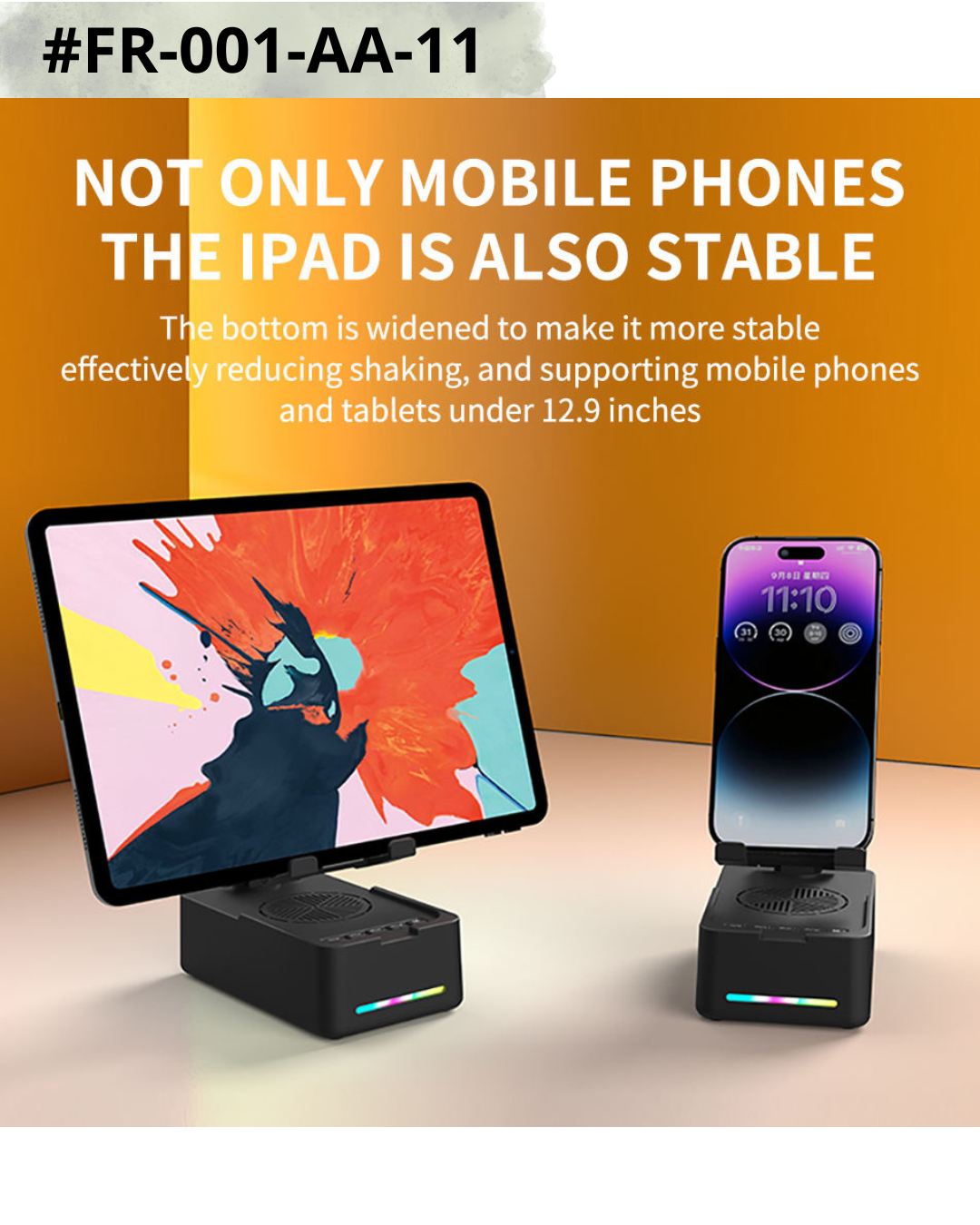 Support de téléphone pliable T203 avec haut-parleur, haut-parleur sans fil avec support pour téléphone portable et base antidérapante pour téléphones et tablettes